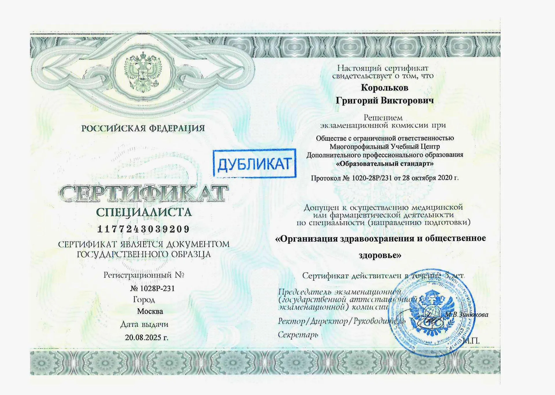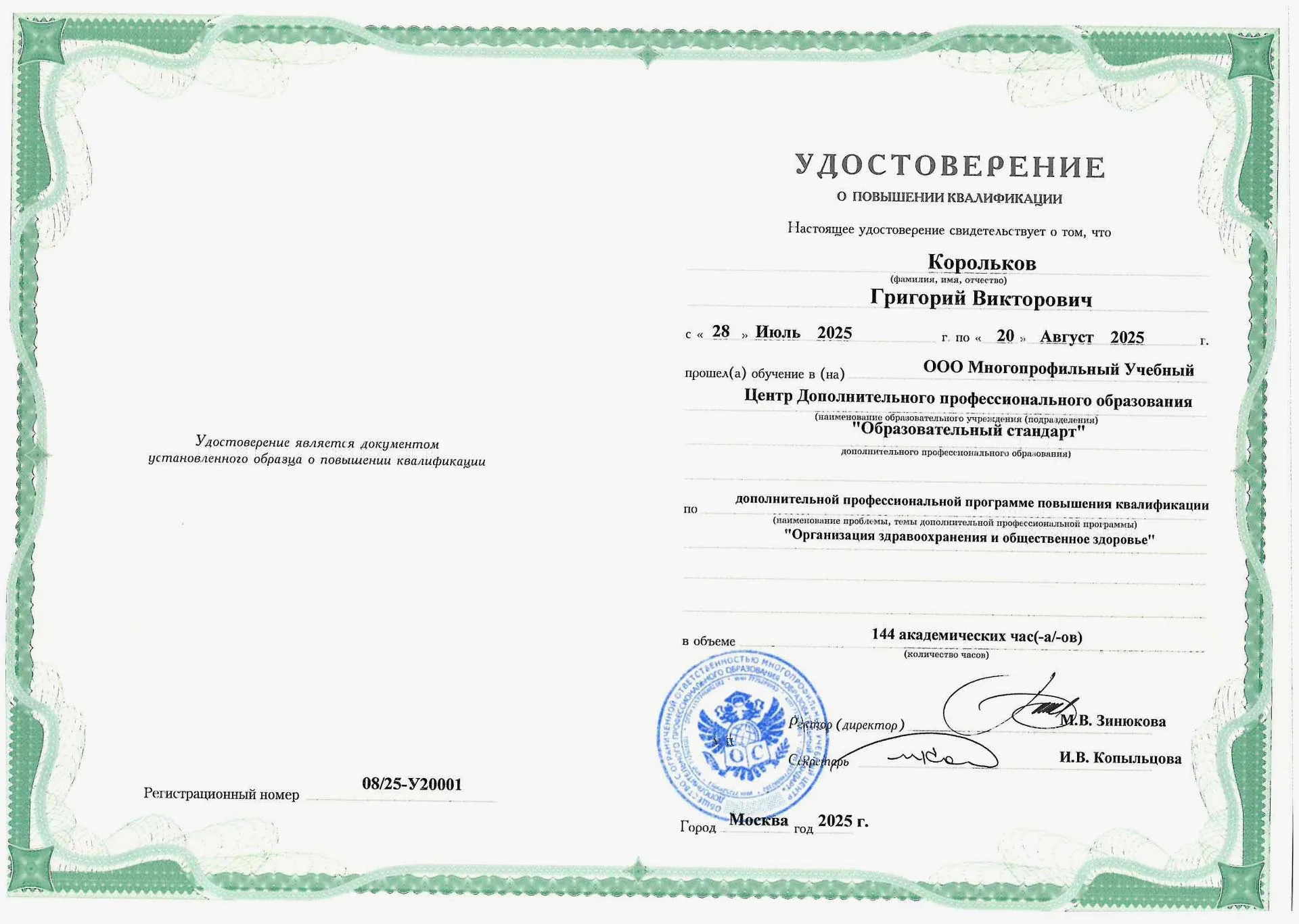 Документ: Диплом о профессиональной переподготовке - Организация здравоохранения и общественное здоровье